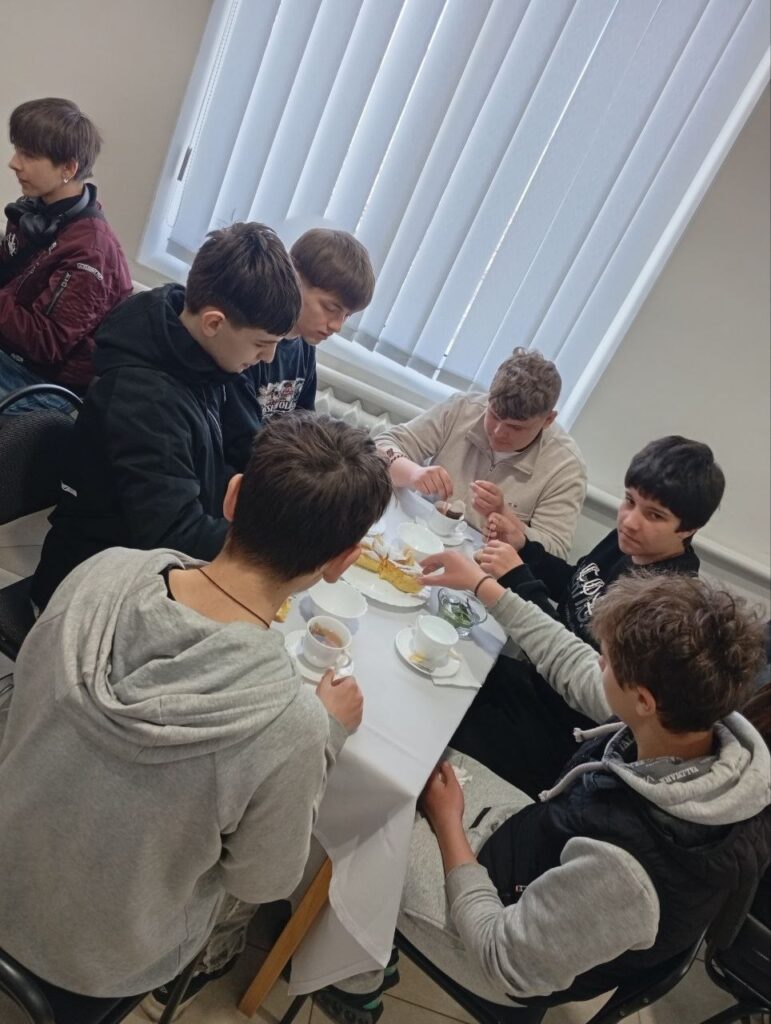 Майстри виробничого навчання та учні за професіями «Кухар», «Кондитер» і «Офіціант» пригостили гостей смачним печивом і чаєм, розповідаючи про переваги та перспективи обраного фаху.